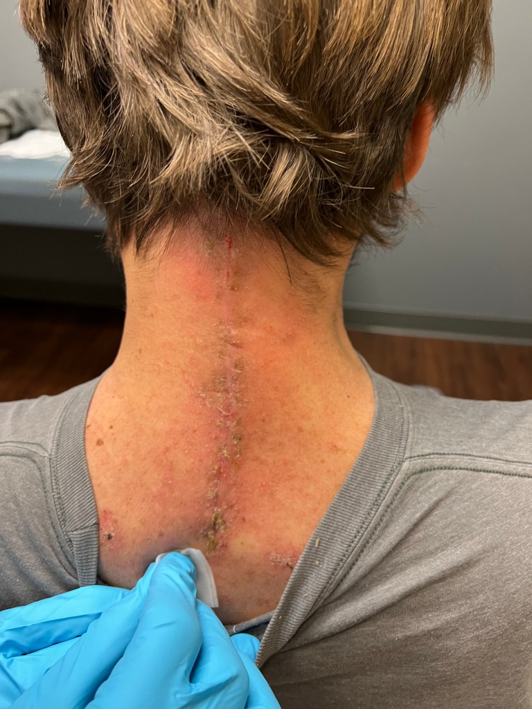 Before we get into the new details, I’d like to first mention how Justin’s recovery is going. To recap, his surgery was a doozy! Many of you who have had cervical spine surgery know it’s big, and the extent of his was astronomical. Initially, the doctors were considering going in through the front of his neck, which would have made recovery easier, but since there was concern of the tumor “seeding,” the back approach was used. While there was/is still a small risk of seeding with the back approach, it’s far less so. Anyhow, Justin had about 10 days of hell. It was pretty much constant pain barely managed by pain pills and muscle relaxers. He had been living in his new recliner (the one we serendipitously bought several weeks ago).